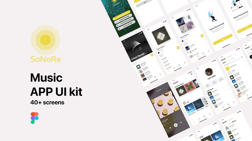 Figma Music App UI Kit 採用貼近現代使用者易用性設計趨勢的設計